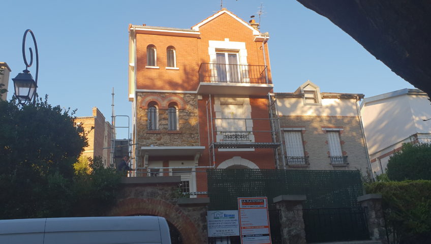 -Réalisation d’un enduit projeté chaux +ciment inclus grillage SUR TOUT LE DERNIER ÉTAGE
